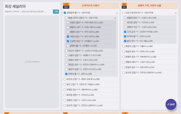 목표 아이템에 필요한 아이템과 잡아야 할 보스를 확인하고, 습득한 아이템을 체크해 보세요!